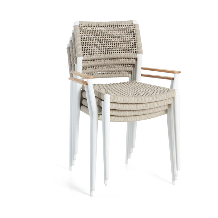 The Ray collection is a timeless elegant addition to the Diphano collection. Starting as 2 dining chairs it eventually grew to contain 8 different models in a variety of materials, finishes and colors. Ray mixes warm teak, cool aluminum, soft ropes, and hard ceramic in a conflict free way that can fit in any outdoor setting.